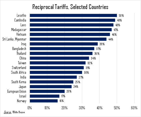 In sum, the new Trump tariffs are expected to bring average U.S. tariff rates to their highest levels in more than 100 years, since William Howard Taft was in office. White House communication has mostly relied on three justifications for the tariffs: they will enhance national security, they will bring manufacturing jobs back to the U.S., and they will restore balance to a trade environment that the Trump administration views as fundamentally unfair. A fourth reason that also cannot be ignored: the Trump administration hopes to raise enough new revenue via tariffs to pay for an extension—and likely expansion—of their 2017 tax cut package, many provisions of which are scheduled to expire at the end of this year.